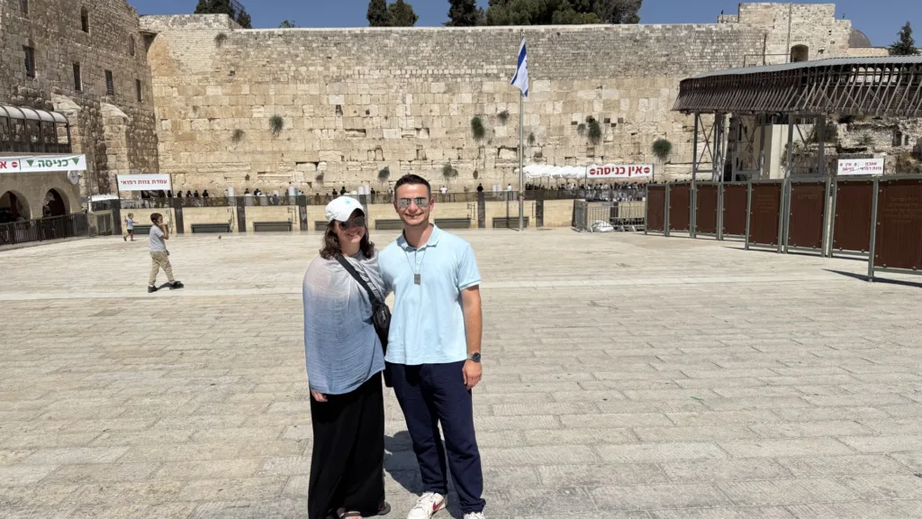 The moment I entered Israel through Ben Gurion Airport and walked down the iconic Jerusalem Limestone ramp, I noticed hostage posters draped underneath the railings detailing the faces, names, and ages of the many hostages still suffering under Hamas’ terror. Sadly, many of these posters had more than 1 age listed – multiple birthdays in captivity. It was an immediate reminder that it is an intrinsic reality of the Israeli people to fight for their right to exist.
